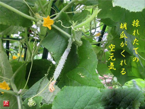 今日の川柳“ 採れたての胡瓜がくれる空元気 ”とても悲しいことがありました。2日ほど家を空けたので、胡瓜の様子を見にいきました。私の悲しみに関係なく元気に育っています。空元気でも元気がもらえるなら・・・?今朝の収穫です。さ~、今日はサロンの日です。5月以来久しぶり、皆さんのお元気な顔が楽しみです。 にほんブログ村いつも応援ありがとうございます。今日もポチッとよろしくお願いします。