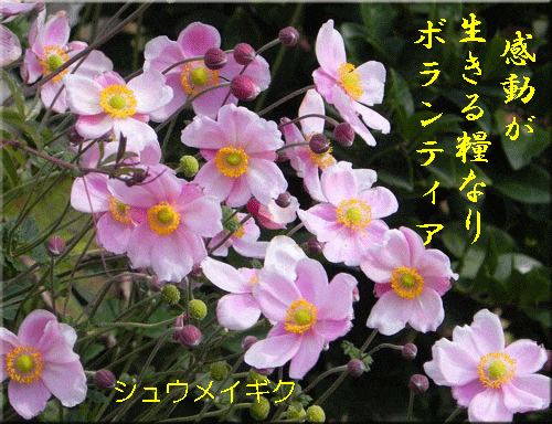今日の川柳“ 感動が生きる糧なりボランティア ”長く生きているといろいろな出会いもあります。昨日は7,8年前から携わらせていただいている、ボランティアの日でした。ある看護学校での「模擬患者」をすることです。まだまだ若い学生さん、とてもとても真剣で緊張の連続です。模擬患者としてはベテランとは言えないものの、人生ではベテランの私たちです。毎回感動をいただきます。短時間でしっかり学び成長していく様子を間近に見せていただけます。昨日もそんな日でした。感動で思わず涙が溢れます。このまだまだ若い学生さんが、いずれ巣立って立派な、優しい看護師さんになることを確信しています。思いがけずこのような出会いの場を作ってくれた友人のKIKUちゃんに心から感謝の一日でした♪終了後は「反省会」と称してお茶しながら振り返りをします。シュウメイギクこのところ毎日出かけています。今日も「漢字の会」の打ち合わせで出かけます。元気で参加できることが嬉しいです。 にほんブログ村いつも応援ありがとうございます。今日もポチッとよろしくお願いします。