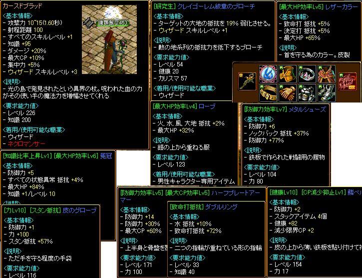 装備です 知識極なんで装備品かなり限定されて困りました。編集へたですいませんorz