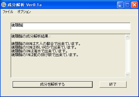 まず自分 俺は大人の都合でできていたことが判明orz続いてギルド名魂の炎でできているってのがいいね ギルドにぴったり続いてギルメン罠とやましさでできているらしい あまり近づけないな(ゴクリ・・・次はサブキャラの魂炎ほぼ優雅さでできているらしい・・・ メインこっちにしようかな(ぁ