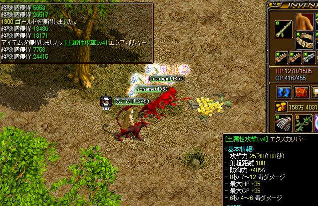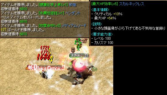 ・・・・紋章クエ品の資金作りといった理由でまた運になってしもうた。そして骨首10%HP54%のものを早速拾いそれを装備。うん。ダブクリTUEEEEEEEEEEEEEEEEEEEGvでも運ででてみた。ダブクリダメ94連続。GV前誰か倒したら俺HEROだなwといってたら2人倒して俺HEROになってしもうたw何気に装備も良くなってきました。