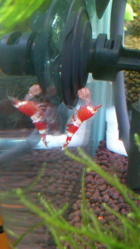 レッドファイヤーの抱卵を期待していますが、なぜかKYなことにヤマトが抱卵してしまいました… 海水なんて作れないし、それを入れる水槽もないし…現状見殺しにするしかないみたい、心が痛みますが…