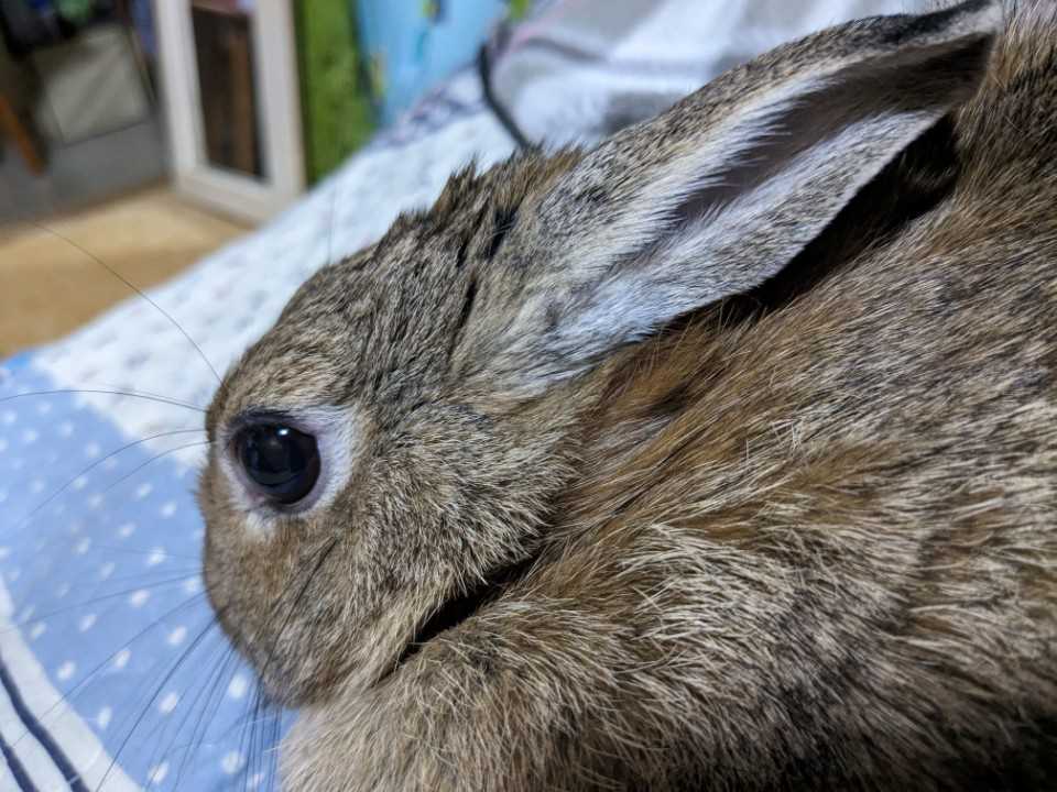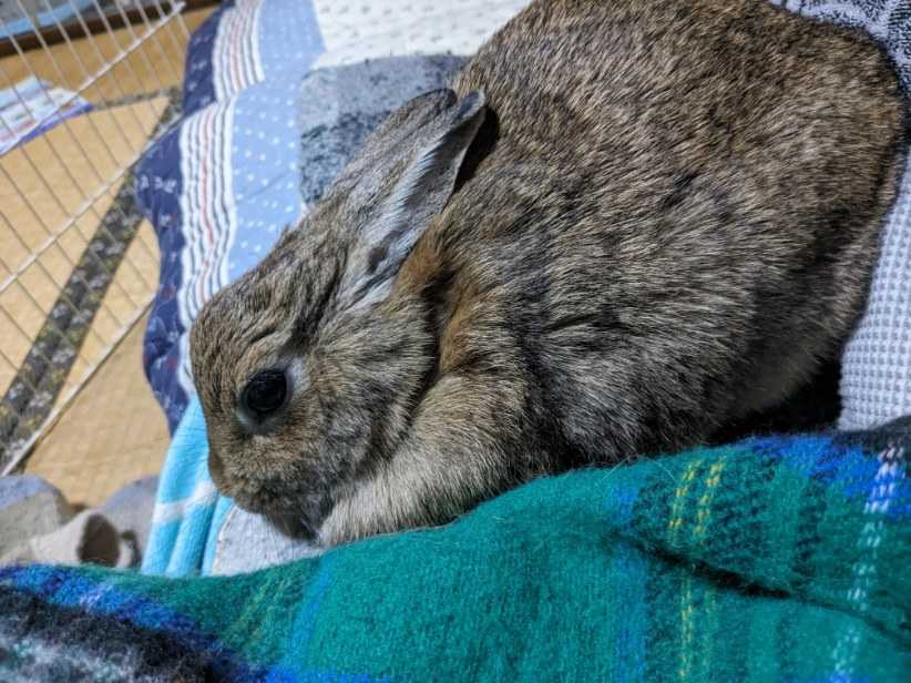 牧草を少しと生のブロッコリーの葉を一枚食べただけ。