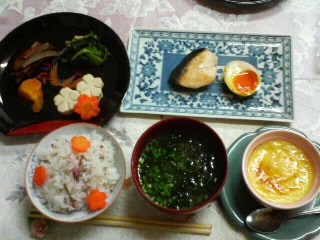 昨日はブログ友達のそうしゅさんのお家に伺い、こんな豪華で美味しいランチを頂きました。 盛り付けがレストランみたいで感激。桜ご飯、おかわりしちゃった~。デザート付きでホント感激。また食べさせて下さい。(゜゜)(。。)ペコリ初めて踊りの振り付け譜面をみせて頂きこれまた感動。歌詞隣に振りの絵が描いてあるの。Tシャツとかにプリントしたら絶対可愛いよって言って笑われちゃった。写メ撮って来れば良かった・・・お腹いっぱいになった所でカラオケへ。今回は演歌多めな私。前回から謎なしゃくり、今回も謎のまま。でもね、しゃくりクィーンはそうしゅさんに決定このしゃくり数は(゜▽゜;) オドロキー 美味しくて楽しい1日でした。次が楽しみだよ~。体調はイマイチ。足の調子が悪いのもあるんだろうけど、体が痛くてだるくてしょうがない。太郎医院、本日は休診らしく診てもらえなかった・・・(´Д`) フゥ今日のお薬 メリスロンx3