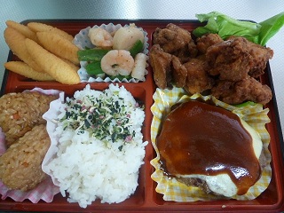 週に二回くらい みんなで近くのお弁当屋さんの お弁当を頼みます。 今日はオムライスにしたよ。