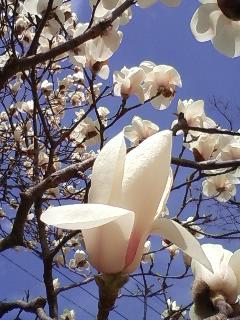 青いバックに見事に映ります。 ハクモクレンって綺麗だなぁ。 好きだなぁ。