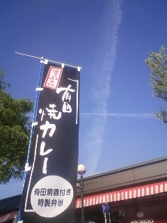 有田陶器市が終わりました。今年も全国からたくさんの方々に起こし頂きました。本当にありがとうございました~ 微力ながら、有田焼に入った駅弁「有田焼カレー」のお手伝いをさせて頂きました。 空には、飛行機雲がクロスしています。珍しいですよね~。写真撮ってたら、さらに2機☆ 応援ありがとうございます^^