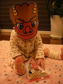 今日は節分。恵方巻きとかって昔は聞いたこともなかったけど今となってはスーパーからコンビニまで予約を受け付けるほどになりTanny家でも毎年巻き巻きしたものを恵方を向いてかぶりついています。littleにとって初めての豆まきなのでお面をもらってきてlittleサイズに調整 豆まきというより豆遊びまぁ、ちっちゃい豆もつかむことができるようになったと成長を実感「鬼は~外、福は~内」って、言葉になるのは何年後かなぁ~