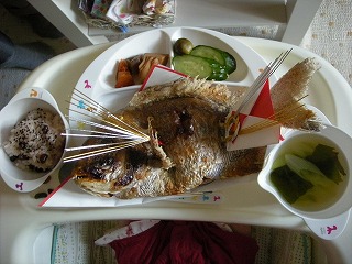 littleも誕生して早100日がすぎましたということで本日は「お食い初め」ですっ100日を過ぎたころに子供が一生食べ物に困らないようにと願いをこめてお食事を用意し食べさせるまねをするそう。フムフム。更に「歯固め」といって良い歯になるように小石をお膳に置くそう。なので朝から小石拾いと予約していた鯛を取りにlittleがお宮参りをした神社へ行くと赤ちゃんがいっぱい後から知ったのだが今日は大安だったらしい石を言うより砂利を頂きエラそうな鯛もゲットしお膳の準備メニューは ・お赤飯・鯛の尾頭付き・煮物・お吸い物・お漬物(食べないけど小石)母なんとかやるべき仕事はさせて頂きましたなんか子供ができたんだ~と改めて実感沢山食べて大きく育つのだlittle