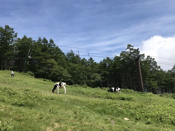 8月2日(日)群馬・長野県境の湯の丸山・烏帽子岳に登ってきた。午前中は雲が多めとの天気予報を見て一通り家事を済ませて7時半出発。9時半前には登山開始出来る予定だったが嬬恋村で通行止めがあり軽井沢に出て長野県側から入ったら地蔵峠に着いたのは10時半近かった湯ノ丸スキー場のゲレンデを登ると牛がのんびり草を食べていた。ちょっとビクビクしながら通り過ぎた。登山道は花で溢れていた。マルバダケブキ。キバナノオダマキがたくさん咲いていた。シモツケソウはピンク色が濃くてきれいだった。ウスユキソウ、クガイソウ、ホタルブクロ、ノアザミなどもキレイだった。イブキジャコウソウも。早くもマツムシソウも幾つか咲いていた。山頂にたどり着いたとき、標識と空しか見えなかった。湯の丸山に登るのは3度目だけど、この景色を見たときにはびっくりした。今までは山頂である南峰しか踏まなかったけど今回は北峰まで足を伸ばした。なだらかな南峰と違い、北峰は岩場だった。北峰から南峰をパチリ。湯の丸山を後にして、烏帽子岳へ。20分ほどで鞍部に下り登り返して稜線へ。そこから小烏帽子岳、烏帽子岳と登って行く。まず、小烏帽子岳へ。向こうに烏帽子岳が見える。烏帽子岳着。ここで菅平方面を眺めながらランチ食べ過ぎて帰りはお腹が重かった。帰りは湯の丸山を登らないで、巻き道をダッシュで帰った。6時から町内の役員会があるので夕食はテイクアウトかと思って帰ったら次女が作っていてくれた。ありがたかった