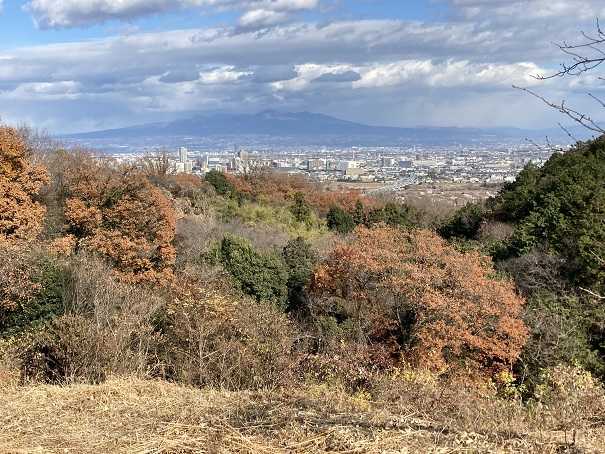 木々の切れ間から、高崎市街地と赤城山が見えた。