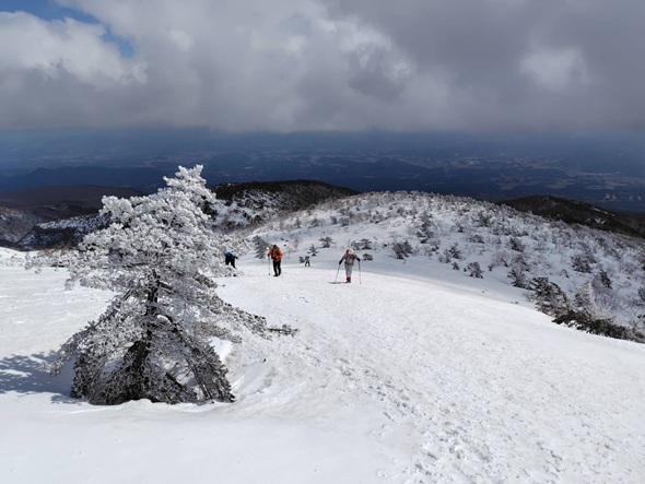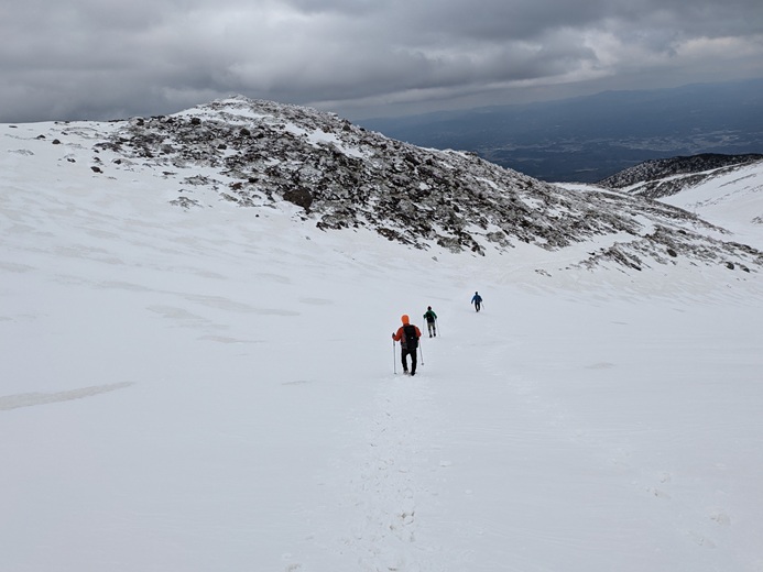 下に来るとまた登山道はたっぷりの雪で覆われてきた。
