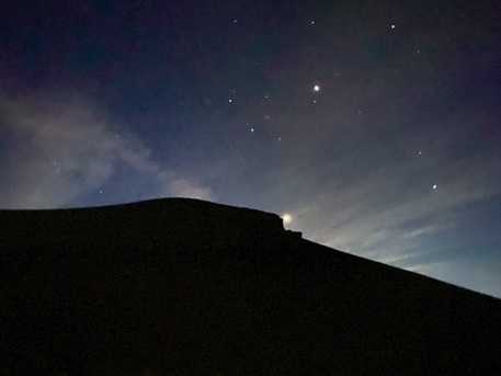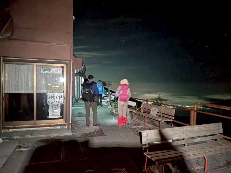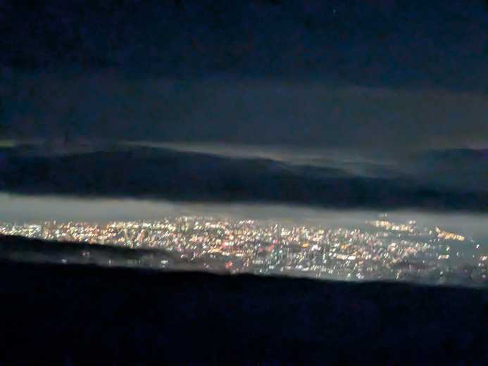 2時頃トイレに行ったついでに外に出てみると、麓の夜景と星が見えた。