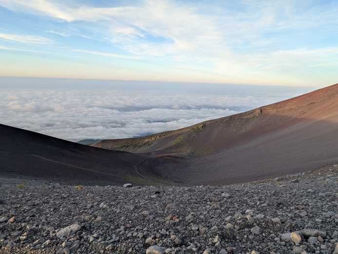 御来光と雲海と麓の景色を堪能して、宝永山を後にした。