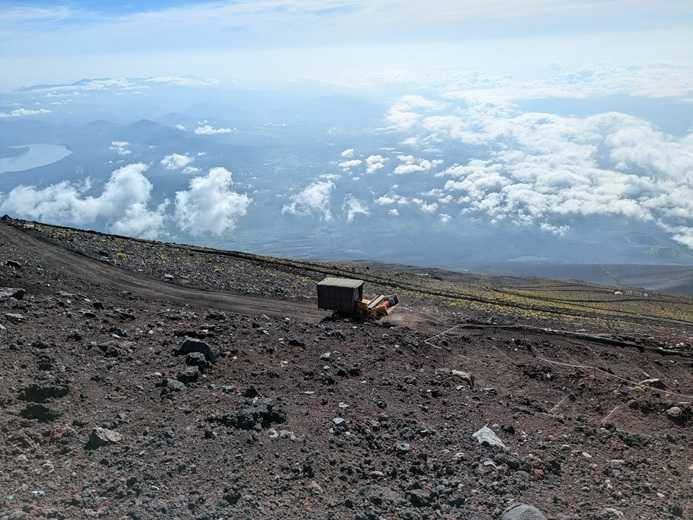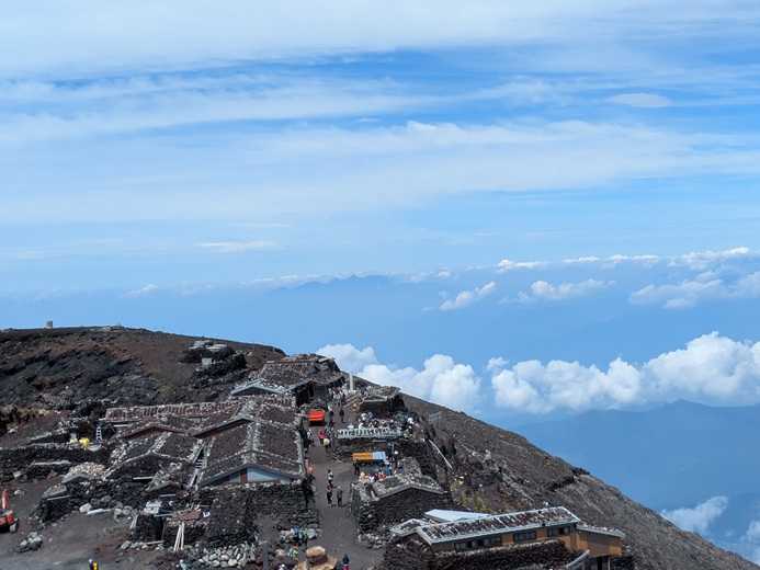 小高いところに登り、吉田口ルートの山小屋の集まりを眺めた。