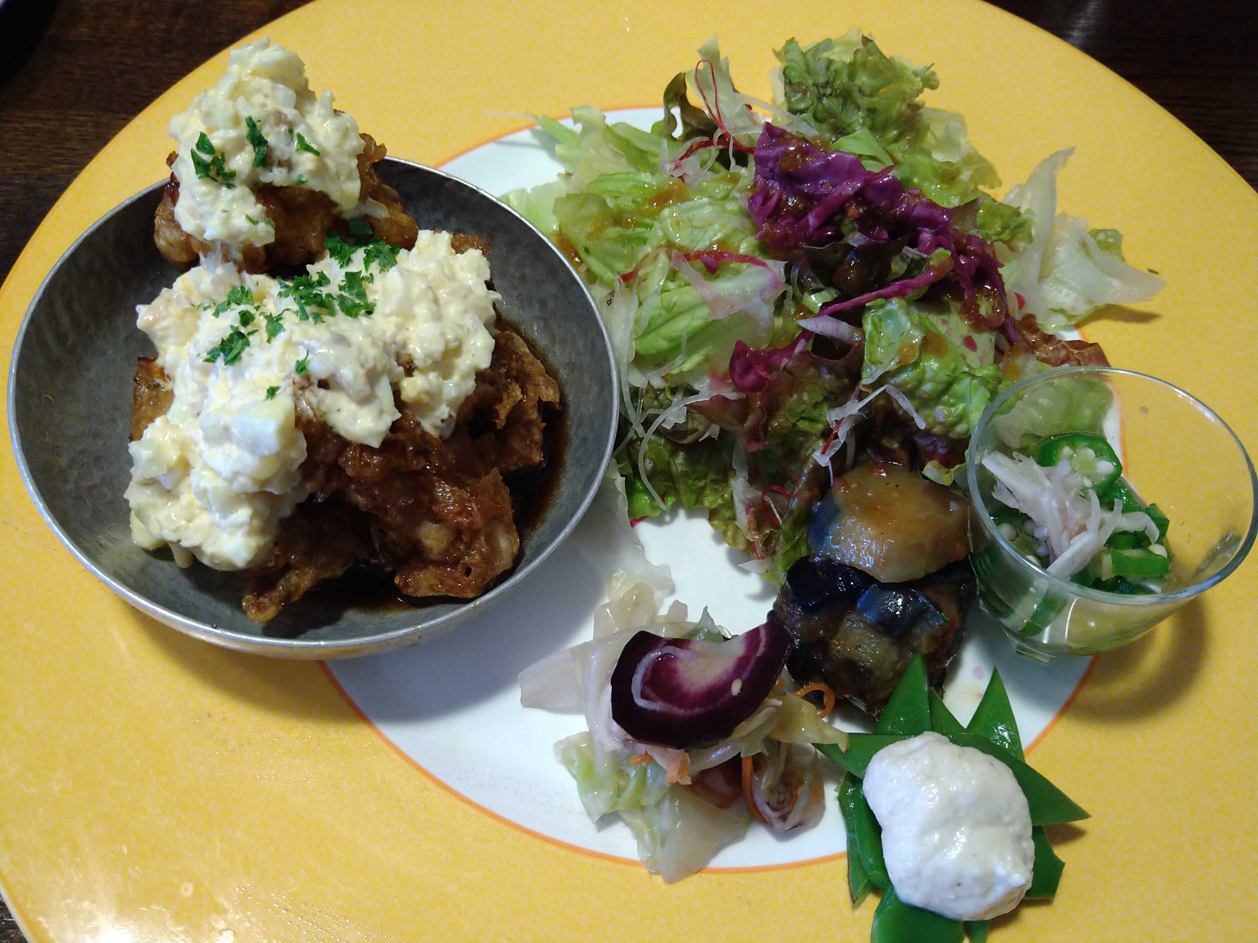 お昼はチキン南蛮をメインに、サラダをはじめ野菜をたくさんいただいた。