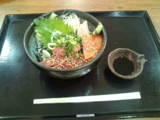今日のお昼は都内某所のフードコートのて。食べたのはまぐろ市場丼700円なり。なんか久しぶりに食べたまぐろ丼です。久しぶりなだけにおいしかった。しかし関係ないけど平日のフードコートは空いてますね。これはいいです。子供連れのお母さん方やお年寄りの憩いの場になってますね。スーツ姿のサラリーマンもいる。でも高校生が結構うろうろしているのはなぜみんながみんな授業がないとも思えないし・・・・
