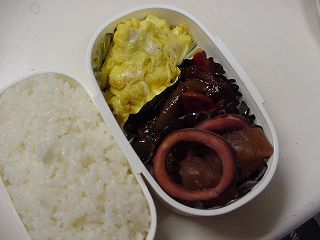 メニュー!!* 卵焼き(オムレツ風)ケチャップ添え(なんちゃって、ただのぐちゃぐちゃ焼き)* 酢豚(くろ~くて見えないねえ!?)* 大根といかの煮物 今日は娘のお弁当だけ。 今日でテスト終了なんだけど、来年行われる「芸文祭」というのに出品する作品を今年中に完成させなければならないということで、今日も残って作業するそうだ。娘は「染め」を選んだそうで、色々に染めた布を使って、ランプ(?)というか照明を作っている。 この作品を作るにあたり、私にも色々相談してくれた。私も嫌いではない(どっちかというと大好き)なので、あーだ、こーだと口出しをした。勉強のことだと、うるさがられるのに、作品に関しては、結構素直に私の言葉にも耳を傾けていたのが意外だった。私も製作に参加しているようで、ちょっと嬉しい! 最終的にどんな物が出来るのか、とっても楽しみ!!