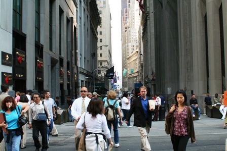 「自由の女神」を見た後はミッドタウンに向かいました。「Wall街」です。「Wall街」って向こうでの地名は無いらしくて日本が勝手に言ってるだけらしいです。入植した人々が、原住民の侵入を防ぐために壁を築いたことに由来して「Wall」とついたようです。しかし、ものすごい警備でした。世界の金融界の中心ですし、テロがあったりしたら大変です。世界中がパニックになっちゃいますから。「ニューヨーク証券取引場」です。【ウオール街から見たトリニティ教会】です。ニューヨーク最古の教会だそうです。少し南に戻りますが「雄牛のブロンズ像」です。牛は下から突き上げるということで景気を上向きにするという意味で「Lucky」キャラクタだそうで、逆に「熊」(Bear)は上から叩き下ろすので運気が下がるということだそうです。牛の「玉玉」を撫でると運気が上がるとのことでした。触るの忘れた!日本人の女の子が恥ずかしげに触っていたのが印象的でした(Moose~~~~~)