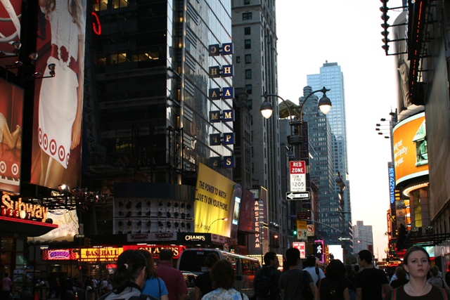 Wall街を見た後は「グラウンド・ゼロ」に向かいました。 9.11から日付も近いこともあり、周辺は緊張がほどけていない&あの大事件の現場にもうすぐ向かうということで少し身が引き締まりました。 アメリカ同時多発テロ事件の報道の過程で、テロの標的となったニューヨーク世界貿易センタービル(WTC)が崩壊した跡地が、広島市の原爆爆心地(原爆ドーム)を連想させるとして、WTCの跡地を「グラウンド・ゼロ」と呼ぶ事が、アメリカ及び世界中で定着している。また2005年8月、アメリカ合衆国本土に上陸した超大型ハリケーン、カトリーナで被害を受けた場所にも使われているようです。しかし、「グラウンド・ゼロ」は今までは原爆が投下された広島と長崎を一般的に指す事が多かったし、また同時多発テロでの犠牲者数は、広島・長崎の総犠牲者数の1/100なのに核攻撃で崩壊していないWTCの跡地を「グラウンド・ゼロ」と呼ぶのはどうなんだろう?と素直に思う。9.11以前はこんな景色があったんですねーさて、いつになくSentimentalな気分になったところでお腹がすいたのでWendy'sでハンバーガー食べました。マンハッタンとは言え一本裏道に入ったところにあるので全然店の中に人がいません。黒人の女の子??二人組が楽しそうに話をしているだけです。時間も明るいので気にしてなかったのですがもう17時を過ぎてしまったため地下鉄を乗り継いで42stにあるグランド・セントラル・ステーションに行きました。日本で言うところの東京駅?新宿?なのでしょうか。歴史的なものなのか文化なのかわかりませんが駅なのにこれが立派な風景となっています。 夜の7時近くですが空はまだ明るいです。グランドセントラルから見たエンパイアステートビルです。