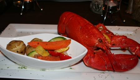 さあ、一日観光してお腹ぺこぺこなので楽しみの晩御飯です。隣の州まで車飛ばして地元では有名なロブスターの店に行きました。なんか街道沿いの店で教えてもらわないとわからない店でした。とりあえずビール飲んで、前菜が出てきて落ち着いたところでおおおお、出てきました!本物!!でかい!!あまりにもでかいのでどうやって食べるの?ってことで店のオーナー(人の良さそうなおっちゃん)に頼んで捌いてもらいました。すんごい量です。満腹です。カロリー高そうだな…ってことでお腹もいっぱいになったのでまた宿に戻りました。すると!カナダ滝がライトアップされてます!!何とも言えない景色です…こんな色にも変わります…カジノの前。満喫の一日。明日はトロントに行きます。おやすみなさい。