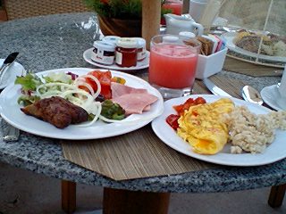 HalekulaniHotelのレストランでの恒例のリッチなモーニング。ワイキキビーチの波音と聞きながらまったりとした時を過ごす…太陽も燦燦と降り注ぐ前なので快適です。グアバジュースにコックさんが目の前で焼いてくれるオムレツ。つい食べ過ぎてしまいます。食べ物アップ美味しそうでしょ?24$。朝ごはんに3000円?高い?目の前にはダイヤモンドヘッド&ワイキキビーチ&BlueSky!そしてSound Wave。アルファ波出まくってマス。高くはないです。みなさん、朝ごはん何処で食べてますか?自宅?Mac?スタバ?スローフードしましょう。美味しい空気吸って、美味しいもの飲んで、美味しいもの食べて…思わずそんなことを考えた一時でした…