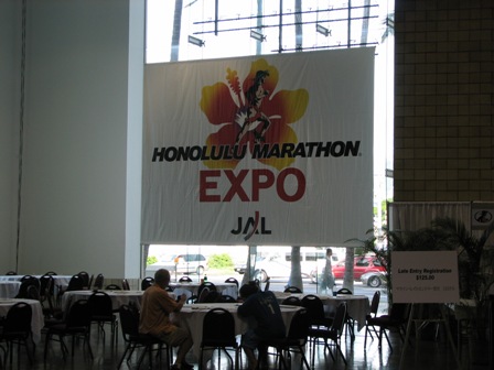 日本時間10日、ハワイ時間9日。ワイキキに入りました。飛行機は偏西風に乗って離陸から6時間30分と言う早い時間で到着。(帰りは逆に逆らうから9時間かかるんだよな…)早速コンベンションセンターに行ってマラソンの申込(チップとゼッケン受け取り)です。中には色々なブースが出ています。かっこいいポスターなんでつい…浅井えりこさんがセミナーしてましたこの店も遂にハワイに出来ましたか…今年は走らないのでグッズは買わないようにしようと心に誓いましたので全くお買い物はしていません。ストラップだけ買いましたが…NikeTownではこの方がセミナーしてました。やっぱ綺麗ですよね~