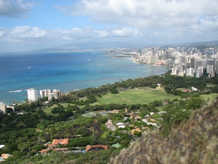 何年か振りに登りました。約1時間くらい、石畳とでも言いますか急勾配ですが。結構体力使います。まずはこの景色!最高でしょ?海が青い!Coco HeadワイキキからTheBusで20分、さらに頂上まで徒歩1時間。半日あれば充分です。お勧めですね。ただ体力に自信ない人はやめた方が良いかも…