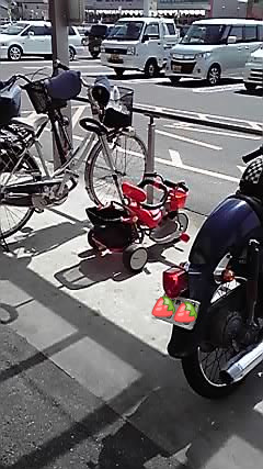 どーも、甘酢あんかけです。土曜日のこと、ちょっくら地元の「○ルディ」っていうスーパーに行きました。んで、お店に入って出てくると、こんな光景が。おっと、僕のカブラの隣に三輪車が。そっか、三輪車も駐輪場に停めるのか。かわいくて、ちょっと笑ってしまいました。自転車やバイクに並んで、堂々と三輪車が。かわいくもあり、なんだかワイルドな感じも。でもでも、三輪車が3台ぐらい並んでると面白いだろうなぁって、ちょっと思いました。まだそんな光景には、出くわしたことはないんでけどね。そんなの見つけると、「おいおい、三輪車でツーリングかよ!?」ってツッコむと思います。でも、かわいいだろうなぁ。そんなほのぼのとした、土曜日の夕方なのでした。さて、日曜日のお話。この日もそんな寝てませんでした。最近ずっと不眠症な僕。今日はたっぷり寝たんですけどね。日曜日は寝てませんでした。んで、当然朝から洗濯ジャブジャブ。今日も2回まわしてやったぜ。1回目は普通の洗濯。2回目は、ジーンズ2本。ってことで、バシっと干しました。そうこうしてると、HKくんから電話が。なんか夏に高校の同窓会みたいのがあって僕に手伝ってほしいと。ん?ん?僕地元の高校じゃないよ?したら「あそっか~」とHKくん。でもなんかPCで打ってほしいって言うんですよね。「僕は地元の高校と関係ないけど、関係ない人でもいいの?」って聞くと「うん、別にいいと思うよ」と。「んじゃ、やってあげるよ」と快諾(かいだく)。ってことで、お手伝いすることになりました。で、28日に打ち合わせがあるんだけどT熊代表で、僕とHKくんが参加することになりました。んで、電話で話してるとHKくんとこは、上の子が2年生だって言ってました。ふ~ん、大きくなったもんだ。下の子は、まだ1歳になってないとのこと。そっか、去年の7月に産まれたんだもんね。そうこうしてると、今度はHMさんからメールが。もう1コのブログもまとめて、全部読んだよ~ってことでした。ありがとです。みんなもブログを2つ読まないといけないから大変なのかな?ま、楽しんでもらえればいいです。んで、今日はT熊小学校の参観日だとのこと。HKくんとこは2年生だよって話すと、なんとHMさんとこも2年生なんだとか。へぇ~、子ども同士が同級生なんだね。なんかオモシロス。さてさて、そんなこんなで僕もお出かけしないとです。来週は雨が多そうだから、お出かけは今のうちにと。ってことで、今日はF山に向かって行くですよ。今回の目的は、スポーツデポに行ってウォーキングの時に着る用のシャツを買いにです。あと、ユニクロにも寄ろうかなと。ってことで、カブラでトコトコ出発ですじゃ。いつものように走っていくです。途中で、家から缶コーヒーを持って出るのを忘れたことに気が付きました。ま、途中で買おうっと。ってことで、トコトコトコ。M永に入ると、○ムーっていうスーパーへ行きました。もちろん缶コーヒーを買いに。はい、自販機なんかで買いません。高いので。ってことで、お店に入ると缶コーヒーのコーナーへ直行。27円の缶コーヒーを2本持ってレジへ。お支払いを済ませて、出発ですじゃ。んで、今度は隣のホームセンター○ーホーに。ここのガソリンスタンドで、給油です。セルフなので、「レギュラー満タン入りま~す」とか言いながら、自分で給油。うしっ、満タンに入った。ってことで、出発ですじゃ。2号線をトコトコ東へ走りますよ~。F山に入っても、2号線をトコトコトコ。F山駅前を通過~。M神町のユニクロへ行きました。ダークグレーのVネックリブTシャツを1枚GET。今日はセールで安かったので。事前に、ネットチラシでチェックしてたのでした。んで、薄手のパーカーも買おうかなぁって思ってたけど色が思ってたよりよくなかったので、やめました。んで、見て回ってると青系のチェックのシャツがいいかなぁと。でもでも、XLサイズがもうない感じ。ってことで、店員さんにXLサイズがないかクエスチョン。いろいろ調べてくれたけど、在庫がもうないとのこと。はうん。ってことで、他にも見て回りました。ポロシャツ欲しいなぁって思ったけど、今日はやめときました。ってことで、お店を出ました。さてさて、スポーツデポに行くです。カブラでトコトコ~。182号線の交差点で左折。高架を越えて、左折、左折、左折、そして右折。ってことで、スポーツデポに到着。ブログ友達のみつ☆るさんちの近くですよね。ってことで、缶コーヒーを1本持ってさっそく潜入開始です。とりあえず、トイレに直行。用を足すと、いざ店内へ。まずはスニーカーのコーナーへ。新製品を見つけたので、とりあえず試着させてもらいました。アディダス 2010年南アフリカW杯記念モデルTR 2010形はサッカーシューズっぽい感じ。なので、いつもよりもっと大き目のサイズの方がいいなって思いました。さて、今度はメンズのシャツのコーナーへ。前から目を付けてたので、すぐに見つかりました。F