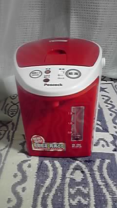 どーも、甘酢あんかけです。加藤あいが大好きです。から揚げとおんなじぐらい大好きです。すみません、から揚げと加藤あいがおんなじポジションって、どうなんですか?さてさて、日曜日のお話。この日は、朝3時半に起床。前の日に、晩ご飯食べたら眠くなっちゃって夜7時ぐらいに寝ました。ってことで、異常なまでの早起き。んで、隣のメインの部屋にテレポーテーション(瞬間移動)。いや、普通に歩いていきましたけどね。で、いつものようにメールチェックやらをゴニョゴニョと。んで、そういや昨日お風呂に入ってなかったのでお風呂に入ることにしました。早朝からお風呂を沸かしてザブ~ン。いい湯だな、ハハン♪ビバノンノン♪お風呂からあがると、まっぱで扇風機で涼みます。はい、これぞ一人暮らしの醍醐味(だいごみ)。お風呂からあがると、いつも思います。さてさて、午前中はネットをしたりTVを見たり、まったりんこ♪それになんだか、小雨もちらほら。ってことで、今日はジモッティーだなこりゃ。おなかも空いたので、久しぶりに焼きそば作って食べました。キャベツと豚肉だけの、シンプルな焼きそばだけど、うまいんだな、これが。それにやっぱりオタフクソースがいい仕事しやがります。さてさて、時間はお昼頃かな。おでかけするアルヨ。ホームセンターのJュンテンドーに保冷・保温バッグを買いにです。ついでに、隣のPルディー(スーパー)でピュアウォーターを汲もうっと。ってことで、小雨もチラホラのので車でブルルンお出かけしました。まずはPルディーで、ピュアウォーターを給水。んで、Jュンテンドーに行って保冷・保温バッグを買いました。さてさて、帰るです。一旦帰って、荷物を下ろしてっと。車もガレージに持って行きました。さてさて、今度は別のホームセンターに行きたくなりました。ホームセンター・Y-ホー。うちの地元には、2件のホームセンターがあります。んで、とりあえず行ってみるかののでカブラでトコトコ行きました。何かいいものあるかいなぁ~?ってことで、いつものようにカウンターへ。カウンターへ行くと、Yさんがいたのでご挨拶。はい、ちょっぴりセクシーな熟女のYさんです。んで、チラシをもらってカウンター前でチラシのチェック。したら、小さい米びつが安かったのでとりあえず見に行きました。テクテク探して歩いてると、あった。おおおお、値段も安いしこれ欲しいかも。1,280円。レバーを押すと1合ずつ出せます。セール品で、この価格は明日まで。ん~ん~、どうしよっかなぁ?ちょっとだけ悩んだけど、他にも見て回ることにしました。したら、前から欲しかったピーコックの赤い電気ポットが、処分品で出てたぁぁぁあああ!!!!値段は、まさかの2,480円!!ネットでも4,000円以上するのに。ちょwwwwおまwwwwwwww!!!!!!これは買わないとですよ。ってことで、米びつと電気ポットと両方買おうか迷ったけど、電気ポットだけ買うことに。現品限りのので、箱はありません。ってことで、電気ポットを持っていざレジへ。ニコニコお支払いをして、お店を出ました。出て気が付きました。うわぁ、今日カブで来てたんだった。カゴに積めるかなぁ?と思いつつ前カゴに電気ポットをそのまま積んで帰りました。やた、前から欲しかった電気ポットが手に入った。しかも、お安く。はい、これがピーコックの電気ポット。レッドとホワイトのツートンカラーでかわいいです。もちろん新品ですよ~。メーカー保障も1年付いてます。余計な機能が付いてなくて、シンプルです。実は、うちのメインの部屋にある電気ポットって壊れてました。お湯は沸くんですけどね。でも押しても、出てこないんです。のので、お湯を注ぐ時はフタを開けて別のマグカップですくって、お湯を注いでました。それがですよ、奥さん。ボタン押したら、お湯が出てくるようになったんです。人差し指でポチっとしたら、お湯が出てきます。僕的には、おおおおおお!!なわけです。やっぱ電気ポットは、押したら出てこないとですよ。ってかね、押しても出てこない電気ポットを今まで使ってたお前がどうなんだ?って話ですよ。だってお湯は沸くんだもん。まだ使えるって思うぢゃないですか。そんなこんなで、僕のティータイムがこれで充実したものになりました。ルンルン♪かなりルンルン♪「花の子ルンルン」とおんなじぐらいルンルン♪うん、言うと思った。やっぱり?さてさて、夕方の5時ごろ携帯が鳴りました。伯父さんからでした。晩ご飯に連れて行って欲しいと。「みつばち」に行きたいと。ってことで、着替えて伯父さんちにブルルンルン。伯父さんを乗っけて、S井町の「みつばち」っていうレストランに行きました。ってか、最近「みつばち」でご飯って多いですよね。さてさて、今日は何を食べますかね。伯父さんは、天ぷら定食。僕は刺身定食にしました。もちろんご飯大盛り。そそ、ご飯大盛りは110円プラスです。んで、食後のコーヒーも。もちろん伯父さ