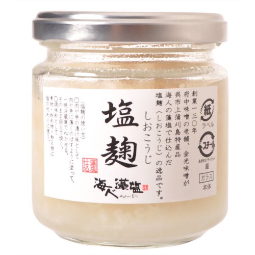 新しい塩麹!八百金と金光味噌の広島老舗コラボで塩麹を作った。ご当地食材の海人の藻塩を使った。オール広島アイテムじゃ~。塩麹 海人の藻塩 180g/塩麹・塩糀(しおこうじ)★特価★税込980以上送料無料塩麹 海人の藻塩 180g価格:498円(税込、送料別)