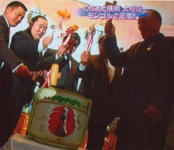 只今何かとお騒がせの横綱 朝青龍関。去年10月にモンゴルで鏡開きをした際にご注文頂き、当店から「来福」の樽酒を3本発送しました。以前にも優勝した際にお送りしたこともあります。本当は気持ちのやさしい横綱なんでしょうけどね。。また、土俵上で強い横綱を見たいです。と、思っていたら本日突然の引退表明。引き際がちょっと残念ですね・・。