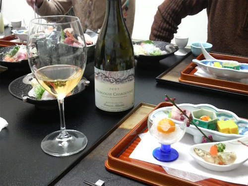 3月1日はお上さんの誕生日。忘れたら大変だ!国外追放か・・追徴金か・・。。ということで懐石料理の「多門」を早速予約しましての誕生会。友人の松本さんご夫婦達も出席してのお食事会です。懐石料理「多門」は、ここ下野市に1月にオープンしたお店です。すでに毎週末は予約でいっぱいだとか。先月も法事で使わせていただきました。料理人も知っている方がいらしたので事前にワインと地酒の持込を。(ワガママ言ってゴメンナサイね。)ワインはセラーに1本だけ残っていたフランソワ・ミクルスキー ブルゴーニュ(白)20031991年末に設立。1992年初ヴィンテージという新しいドメーヌではあるが、ムルソーのトップドメーヌ[ピエール・ボワイヨ]の甥であり、そこでの修行、その後カリフォルニアに移って、あの「カレラ」で積んだ研鑚などにより、今ではトップドメーヌの仲間入り。ブルゴーニュ白ワインの最大注目生産者の一人です。2003年とはあの猛暑の年。2003年はかつて経験したことのない並外れた年で、収穫物も最高の出来でした。年間を通しての異常ともいえる気象条件にもかかわらず、ブドウの出来は最高でフランスの夏は想像を絶するほど暑く、8月の前半は常に気温40℃を超えていた年。2003年の収穫は高気温のため1370年以来最も早い収穫開始を記録したとある。そういえばこのワインの外観は、熟成感のある色調で色が濃いですね。ピーチやアプリコットなどトロピカルフルーツが時間とともに次々と現れオイリーなテクスチャー、上品で優雅な味わいは、素晴しいの一言。地酒は「松の寿 雄町 純米吟醸生原酒」今年の出来も期待を裏切らなかった。例年よりさらに進化した味わいが感じられた。さすが下野杜氏(しもつけとうじ)。料理との相性も良くお酒の飲めないお上さんもとても美味しいお酒とベタ褒め。美味しい料理に旨い酒。これから春の食材が豊富に出回る季節。そろそろフキノトウを探しに山へ出かけるとするか。春はやっぱりフキノトウからですね・・。懐石料理「多門」下野市料理は本格的懐石料理です。素晴らしい味わいで連日予約のお客様でいっぱいだそうです。お近くの方はぜひご来店してみて下さい。きっとご満足することでしょう。お薦めのお店です。