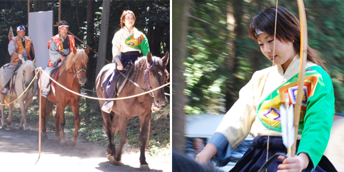 9月20日(日)真岡市にある中村八幡宮例大祭に行ってきた。中村八幡宮といえば文治5年(1189年)源頼朝率いる鎌倉軍が奥州遠征を行う際、当地領主中村宗村は当社に戦勝を祈願してこれに参軍し、成就して功を挙げ奥州伊達郡(現在の福島県)の地頭職を授かり伊達に移住、伊達氏の祖となったという歴史のある八幡宮。伊達家の祖先はこの中村の出身。母親の実家がこの中村なので子供の頃、祖父に連れられて見た記憶がある。馬の慣らし。これからが本番です。本日は3頭による流鏑馬です。本番その一お見事!見事に的を打ち抜いた。本番その二ほっと一息。素敵な笑顔でした。