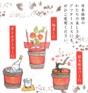 使用済み角樽の使い方・・その1こんな使い方もあるんです。日本古来の伝統美が生かされてとても優雅で美しいと思いませんか。美しい角樽のオブジェ
