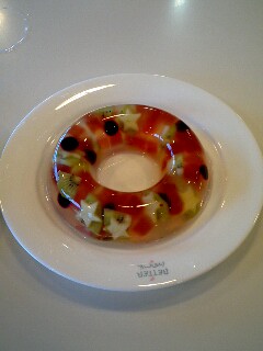 今日から某お料理教室の、「お菓子部門」が始まりました月1回のレッスンなのですが、ちょっとした暇つぶしにはちょうどいい感じ今日のメニューは「クリスマスゼリー」と「ショコラリッチ」ゼリーはワインを入れるもので、結構簡単に出来るのに、見た目はかわいいクリスマスが近いからか、リースに見立てた感じで、中には星型にくり抜いたりんごやキウイ、ブルーベリーなども入っています出来上がりはこんな感じですおいしそうでしょ~??もう一つのショコラリッチは、その名の通り、チョコレートケーキですすごく濃厚で、重た~いケーキなのですが、おいしいし、これまた簡単ショコラリッチの方は一人一つずつ作ったので、甘いものが大好きなボスへのお土産に私達は、先生が作ってくださったケーキと、自分達が作ったゼリーを最後に紅茶と共にいただきましたせっかく専門的に教室に通っているのだから、おうちでもドンドン作っていこうと思いますそれにしても、お菓子ってすごく奥が深い材料を入れるタイミングや、段取りを間違えると全く違うものになってしまって案外ごまかしが出来ないんですよね~クリスマスケーキは手作りで頑張るぞ~
