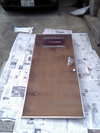 初代の表札から今度出来る新しい表札に付け替えるために、すっかり日差しで剥げてしまったドアの塗り直しを行った。