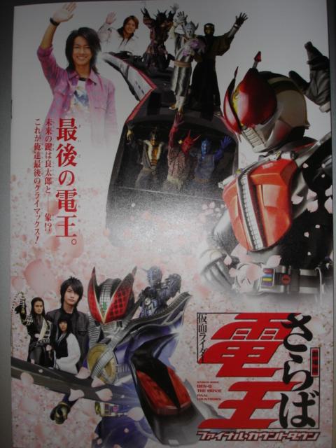 曇りで、肌寒い日です。昨日から公開の映画、「さらば電王」を観てきました。さすがに、子供から大人までいましたね。今回は、二度目となる単独公開なのでテレビシリーズからすきで、前回の電王、刑事を劇場に見に行けなかったので、見に行ってきました。やはり、面白かったです。小さい子供も、観る関係か・・・上映時間は90分弱ぐらいか・・・もっと観たかったなと。それに、モモタロスは毎度、笑えるし泣けます^^;;映画は楽しいですね。講座の案内も見てくださいね。↓ ↓ ↓天海コーチの講座を開催します。◎「天海 悠の関係性ワークショップ」in 仙台 ~未来の鍵を手に入れる~ 日時:10月26日(日曜日) 10時~16時場所:エコ暮ラッソ・サロン 仙台市青葉区一番町三丁目5-27 梅屋ビルF3 ※電力ビル(電力ホール)の裏手、一階が和楽器のお店です。☆関係性ワークショップとは男女関係、結婚、仕事のヴィジョン、金銭感覚、そして、あなたとあなた自身など、あなたと何らかの対象との間に起こっているテーマにアプローチすることで、あなたが望む未来へ向かう道を見いだすワークショップです。関係性の中で起こっている物事や感覚、事態を潜在意識や意図にアクセスすることで、問題解決のヒントや目的を達成するために何が必要なのかを明らかにします。講座詳細&申し込みはこちらです。メルマガ発行開始~杜の都、仙台発!幸せのコミニュケーションの魔法を公開です!~気ままなカルテット、メルマガ『杜の風』(ID:0000205657) メールマガジン「杜の風」読者登録◎ 天海コーチのメルマガ【人生を変える☆しあわせ成功講座】◎ マイコーチジャパン