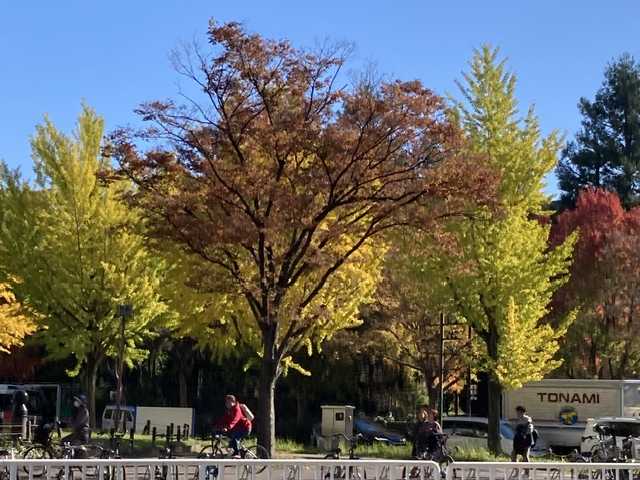 お出かけ連チャン。今日は、名古屋で紅葉三昧。 ・・・+美術館。マジで、日程キツイ××× ~_~;あまり頑張れず、正午過ぎのJRに乗るのがやっとで。(汗)ため込んだ洗濯物とかあったしなぁ。最低限の家事はせねば××× 今日まわる紅葉狩りの場所は、久屋大通庭園フラリエ、徳川園、白鳥庭園。徳川園と白鳥庭園はライトアップで。両園ともライトアップの開催日が週末のみで、しかも二週だけ。ここにダンナの出張が重なるのは至難の業というか、まあまずないことで。けれど二年前に一度ヒットしたのよね。その年、初めて行ったわ♪とてもきれいだった ! ! !≧▽≦今年また、運よく機会に恵まれ、再び訪れるわけだけれども、その時のタイムスケジュールをほぼ踏襲することに。 ↑ ここの日記に 詳しく記事を書いているので容易。(笑)距離の離れた場所をあちこちめぐるので、要領よくまわる必要があり、過去のタイムスケジュールはとても参考になるのだった。^ ^;まずは、久屋大通庭園フラリエから。名駅へは行かずに、金山から地下鉄に乗り換えて行って。今日は、この後も地下鉄で移動しまくり。しかも名城線のみ。同じ路線を行ったり来たりするの~。^ ^;フラリエの前の街路樹先週よりいっそう色づいてきてる。園内の池の周りも~♪ ≧▽≦右側の木々。 赤・黄・緑の グラデーションが 美しいのなんの ! ! ! ≧▽≦ ≧▽≦ ≧▽≦ ちなみに今月初めの11/6は・・・そして先週、11/16今日11/22ここは先週、さほど色づいてなかったんだけれども、少しずつ赤くなってきている。ココもそう。それからココも。次、名古屋に行くのは、12月初めを予定しているんだけれども、更に紅葉が進んでいるのか、はたまた通り越して、散り始めているのか・・・どっちだろう。・ω・ツワブキが花盛り。それから、先週にはなかった、クリスマスっぽい飾り付けがちらほら。これ、ツリーっぽいよね ?^ ^;フラリエを散策した後は、地下鉄で大曽根へと移動。過密スケジュールで時間がないので、大曽根駅のコンビニイートインで、手早くお昼を済ませて・・・購入したサンドイッチなんだけれども。以前は大曽根駅に、イートインのあるベーカリーがあったんだけれども、いつの間にやらつぶれてて。そのかわりに利用したのが、今回のコンビニイートイン。^ ^;手早くお昼を済ませた後は、徳川美術館へと。中編に続く。