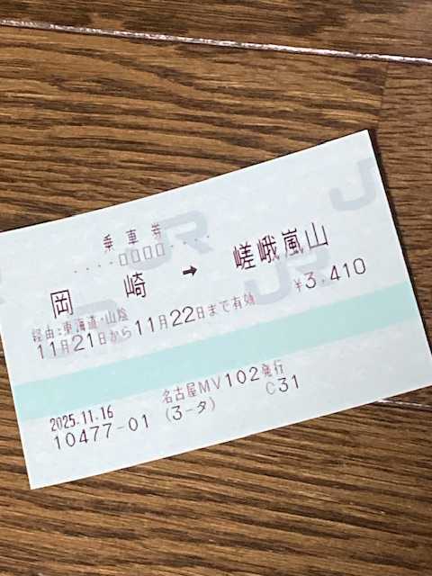 3週連続、関西日帰り旅。(汗)いい加減疲れてきてるんだけれども、ダンナの出張の時しか出かけられないので頑張るしかない。行きたいところもあるわけだし。ちなみに続けざまに出張しているダンナも、いい加減疲れてきたし、飽きてきたそーだ。 ↑同じ場所に毎回行ってる。(苦笑)で。今回の行先は京都。目的は紅葉狩り。二週間前に、正倉院展の帰りに京都に立ち寄ったときは、もう今年は京都には来られないかもしれないと思っていたのよね。12月アタマの出張が取りやめになったので。その12月に京都に行くつもりでいたからサ。え~・・・と、少々戸惑い、ショックで。今年も紅葉の進み具合は遅そうだし、12月のアタマなんて、紅葉の真っ盛り。まさにベストシーズンなのでは ! ?と、期待していたというのに×××;つД`)一応、11/22~24日が、代わりの日として出張になったんだけれども、これって三連休 ・・・紅葉の名所が、 激混む日程、 ドストライク。(汗) Σ(・ω・ノ)ノ!京都の紅葉は見たいけど、こんな激混むドストライク日に行くのは、かなりためらわれ・・・迷いまくっていたところ、一週間ほど前に、急遽日程が一日前倒しに変更。11/21~23へと。 お~ ! ! 21日は 平日じゃんっ ! ! ! (=゚ω゚)ノ平日なら行く行くっっっ♪てことで、今日行くことになった京都紅葉狩り。^ ^;今年は何度もダンナの出張の日程が変更になり、バタバタしまくりだわ~。今年の京都紅葉狩りは、日中は嵐山に行くことにして。去年、学習したのよね。100キロを超える長距離切符は、たとえ同じ運賃でも、行先を乗り越す駅で下車すると、乗り越し料金が必要になる、と。東福寺がダメだったのよ。京都駅下車と同じ運賃なのに。調べてみたら、嵯峨嵐山も京都と同じ運賃で行けて。じゃあ、行先を『嵯峨嵐山』にして買わないと・・・てことで、一年ぶりに、指定席を買う券売機で購入。JR東海の券売機は、指定席を買う券売機(名称がない)で、『行先案内』からまどろっこしいことをして買うのよね。長距離の乗車券。説明するのもまどろっこしいから詳細は省略。(苦笑) ↑ おい。 JR西のみどりの券売機みたいに、単純ストレートに買える券売機にしてほしい・・・- -;ちょっと頑張って、いつもより30分ほど早い電車に乗ったわ。京都まで在来線の旅。7:53発。2回乗り換えて、10:43京都着。嵯峨野線に乗り換えて、11:14嵯峨嵐山着。嵯峨嵐山駅 ・・・人多し。(汗)外人さん、多いな~。中国人も結構いる・・・今、騒ぎになってるけど、全然いる~。~_~; 平日でもこれだけ多いのなら、休日なんてとてもじゃないけど×××嵐山では二カ所まわる予定でいて、まずは天龍寺から。2022年に嵯峨野の紅葉巡りをしていて、その時に今度は嵐山・・・天龍寺を見たいなと、思ったのね。帰りに北門のところから中をチラ見して。3年ぶりに願いをかなえたってーワケ。^ ^;天龍寺天龍寺って、大学入ってわりとすぐ、友達と来たと思うのよね。記憶、おぼろだけども。そのあとも来たことあるのかな~。昔過ぎてよく覚えてないけど、なんにせよ、30数年ぶりなのは確か。(苦笑)あのころは、嵯峨野線は本数が少なくて使い物にならず、京都駅からバスに乗ってきたのよね。道が混むせいで、一時間くらい乗ってた記憶がある・・・座れればいいけど、帰りなんてずっと立っていて地獄だったなぁ。´-ω-`方丈にたどり着くまでの紅葉も見事。方丈お庭だけ見ることもできるけど、せっかくなので方丈にも上がって。お~っ。 思ったより 紅葉してる ! ! ! ≧▽≦にしても、やっぱり人多いな・・・苦笑。方丈の後で、お庭の方にも回って行って。写っている建物が方丈。曹源池の周りの紅葉がキレイ。紅葉をバックにご満悦♪石庭・・・枯山水ってやつ ?外人さんがこれ見てなんか喜んでたな・・・曹源池から北門の方へと。 キレイ、キレイ♪ ´▽`*ちょっとした竹林もあったり。山の方に上って。高台より見た風景。 京都タワーが 爪楊枝みたいに見える~。 ;・∀・一時間くらいいたかな~。広いし。方丈からお庭を眺めるの、最高だし。なんだかんだね。^ ^中編に続く。