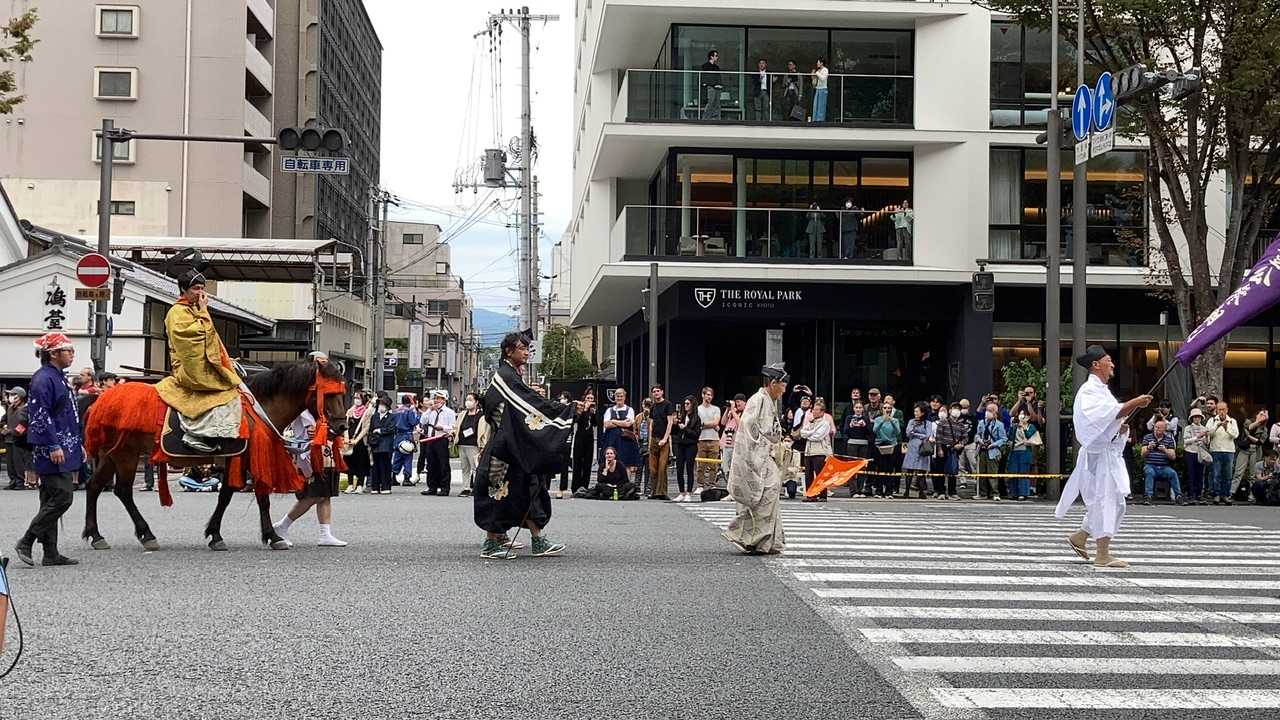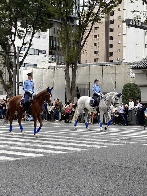 ちょうど一年前の時代祭の写真を載せてみようかと。このあいだ、京都駅大階段のグラフィカルイルミネーション・時代祭編の写真、載せたんで。京都駅の大階段グラフィカルイルミネーション ~時代祭編。 | TEA&GARDEN ちょっとひとりごと - 楽天ブログその時、去年見た時代祭の写真も振り返ったんで。頑張って載せちゃおっかな~な、気持が高まった、と。^ ^;なんか色んな記事書いては途中で止まっちゃってたりするんだけど(苦笑)、 ↑ 『鳥展』、万博、アートアクアリウム・・・ ;・∀・今載せないと、そのうちそのうち…と思いつつ、何年も経過しそうだったので。・・・って、実際にそーゆーネタ、いっぱいあるし。;・∀・ ;・∀・ ;・∀・ま、そんなわけで載せます~。もとい、何回かに分けて載せていきます。時代祭 2024.10.22見た場所は、市役所近くの御池通。先頭は警察官 ?調べてみたら、平安騎馬隊っていうらしい。おー・・・始まる始まる。時代祭の行列は、新しい時代から古い時代へとさかのぼっていくスタイルで。府議会議長市会副議長市会議長京都府知事京都市長文化庁長官 明治維新後だと思うんだけど、衣装が・・・時代にあってないような違和感。;・∀・その2に続く。今日の京都は小雨が降ったりやんだり ?去年は、雨の心配なく見られたのよね~。いい年に見ることができたなあ。と、その幸運を思う。^ ^;