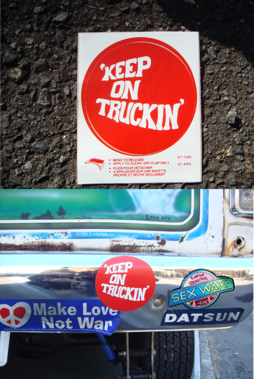 古いステッカーって安っぽくてかっこいいですよね~~(一応ほめてるんですよ)惜しみなく、バンパーに適当に貼ってしまいました