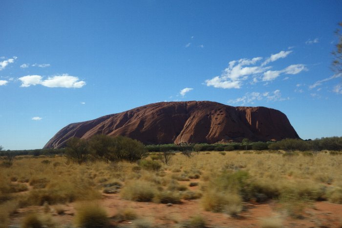 オーストラリア大陸のほぼ中央(ノーザンテリトリー)・・赤土の荒野に忽然と姿を現すエアーズ・ロックは周囲約9.4km・・海抜863m(地上からの高さは346m)の世界最大級の一枚岩で1987年にユネスコ世界遺産に登録されましたエアーズロック実は大きさは世界で2番目です 世界一の大きさを誇る一枚岩は同じくオーストラリアにある高さ858mの巨大な一枚岩「マウント・オーガスタス」でエアーズロックの2.5倍もの面積を持っていますまさに「地球のへそ」と呼ぶにふさわしい姿でオーストラリアといえばこの岩を思い浮かべる人も多いでしょう西洋人による発見は1872年・・探検家ウィリアム・ゴスが大陸内部探査の途中でみつけ当時の南オーストラリア長官ヘンリー・エアにちなんでエアーズ・ロックと名づけました現在はウルル・カタジュタ国立公園としてオーストラリア政府がアボリジニ・コミュニティから借り受けています・・アボリジニにとって重要な聖地であり名称もこのあたりに住むアナング族が代々呼び続けた名前「ウルル」と正式に変更されていますエアーズ・ロック周辺にはこの巨大な一枚岩のほかにも重要な見どころがいくつかありますなかでもエアーズ・ロックとともに世界複合遺産に登録されているオルガ岩群(カタジュタ)エアーズ・ロックと大陸中央の町アリススプリングスとの中程にあるキングスキャニオン(ワタルカ国立公園)は中央オーストラリアの見逃せないポイントです・・今回は時間の関係で残念ながらキングスキャニオンに立ち寄ることができませんでしたノーザンテリトリーって何処にあるの?地図のちょうど真ん中あたり・・ウルルの最寄り空港はコネラン空港(エアーズロック空港)でエアーズ・ロックリゾートまで車で10分程・・エアーズ・ロックリゾート一周歩いて約30分ほどの小さい集落でサークル上のエリアの中にホテル・キャンプ場・・ショッピングスクエア・銀行・警察・診療所などが立ち並ぶ 小さいエリア・・ホテルの立地はさほど重要ではないのですがエアーズロック観光は想像以上にハード!疲れた体を休めて翌日の観光に備えるには快適な滞在が必須・・Oちゃんが予約してくれていたアウトバック パイオニア ロッジ(Outback Pioneer Lodge)は大変便利なロケーションにあり快適でした今回はここからダーウィンまで3000km縦断の旅です・・続く・・FC2・・はこちらから
