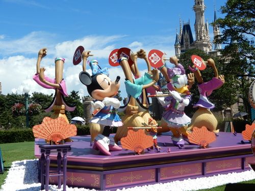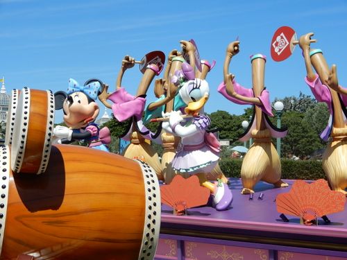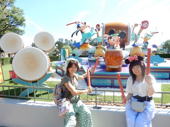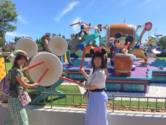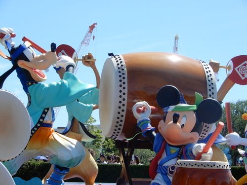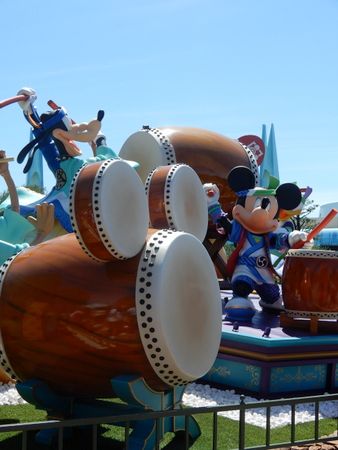 ミッキーとグーフィーの和太鼓演奏。ホントは向こう側にドナルドもいます。