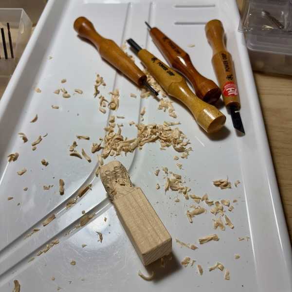 最近自分の創作物アートがヤフオクで落札され始めました。その内のひとつが「ねこ手スタンプ」です、猫の手が木の箱から出てるようなオブジェで肉球がスタンプになっていて捺印できますwwwこれ自分の中では結構推してるアイテムでもっとも手軽に手に入れられて楽しめるアートです。いずれにせよ自分のアートにお金を出してくれるとゆうのは何度も言いますが本当に嬉しい事です。さて「ねこ手スタンプ」が売れたので次のを作って量産しようとゆう魂胆です。以前絵を描いたキャンバスボードの裏面に貼り付ける為にカットして余った1cm厚みの工作用木材の檜を2枚貼り合わせてスタンプの元素材を作ります。これは寸法を間違えてカットしてしまったものなどなど;汗、捨てるのも勿体無いので。この「ねこ手スタンプ」を作ったのも結構前の事でしたので作り方をちょっと忘れていました。最初に彫刻刀で荒削りしたのですが、思ったより硬く大汗をかきます;汗。檜の節が邪魔してなかなか彫れません。荒削りの後、ルーターで掘り進めて行ったのですが、多分最初からルーターで彫ったのかと。ビットを大きなものに換えて彫ったのか?最初から大きなビットでルーターをかけると暴走して余計な部分まで削ってしまうような気がして彫刻刀で彫ったのですが。ここでしばらく使って無かった防塵ボックスを使います。ルーターを使うにはちょっと狭いのですが粉塵が飛ぶのを多少なりとも防いてくれます。これもしばらく使ってなかったので捨てようかと思ってたのですが、やはり多分以前「ねこ手スタンプ」を作った時に購入したのかな?捨てなくてよかったwwwいずれにしても量産には程遠い手作りです。ねこ手スタンプNo.01マイオークションページコンパクト防塵ボックス / リューター 研磨 仕上げ