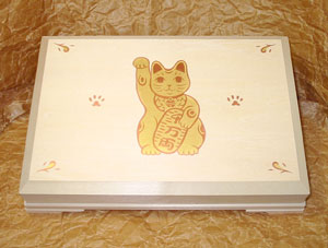宝船と同じ箱の蓋に招き猫を描いてあります。
