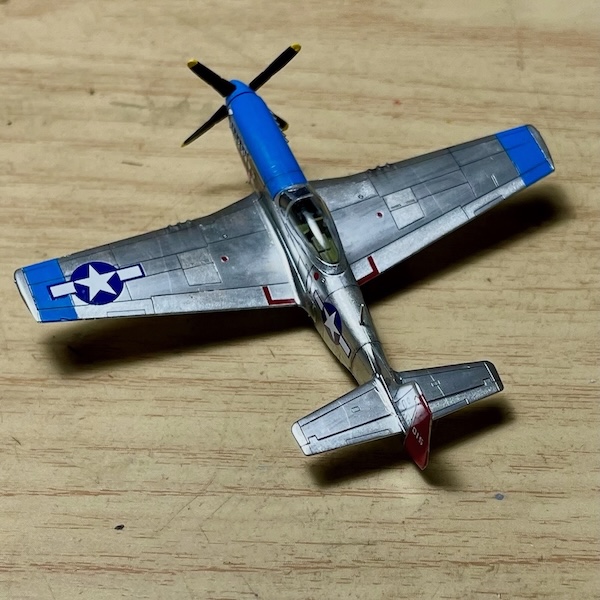 ライトブルーに塗ったスピナーのプロペラを使うので機体前方上面のアンチグレアに同色を塗り主翼の先端にもライトブルーの帯を塗って派手なイメージにしてやりました。