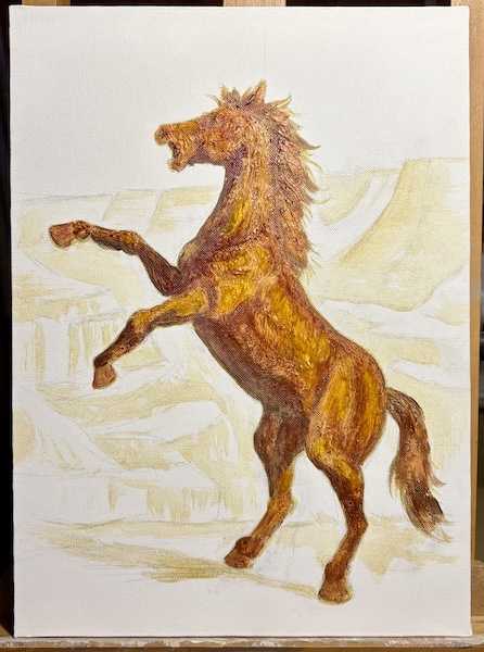 これは今回初めての試みで、野生馬の筋肉の荒々しさを表現したいと思ったものです。