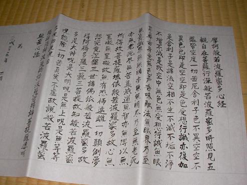 なかなか墨をつけて筆で字を書く機会ってやってこない。たまには筆ペンでなく筆で字を書く習慣がほしいなとか思い、写経セットと写経の本を買ってみた。仏教の信者でもないんだけど、もう、5回ほど書いているけど、いいかも(^^)時間はかかる、足はしびれると、デメリットもあるけれど。我慢をするのも一興(^^; この際だから般若心経も覚えてしまえばいいかな。もしもだけど、もしも、幽霊とかにあって怖かったら、お経唱えると離れていくらしい。まだ、幽霊は見えないけれど、・・・覚えて損はない。 一文字一文字書くのも小学校以来かな。