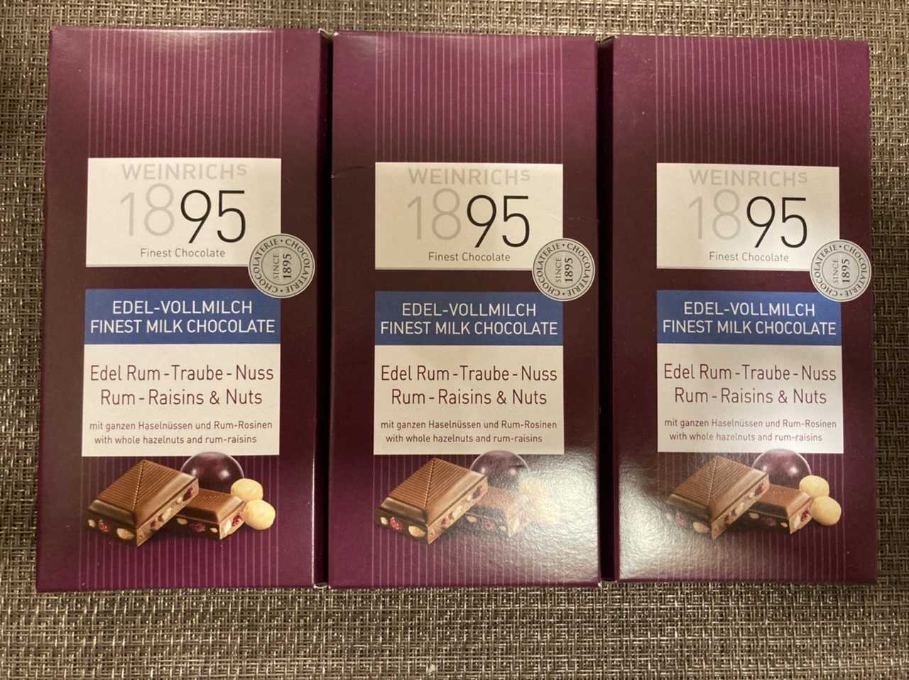 【3個】ワインリッヒ ミルクチョコレート ウィズ ヘーゼルナッツ&ラムレーズン 100g【メール便配送(ポスト投函)、代引不可】